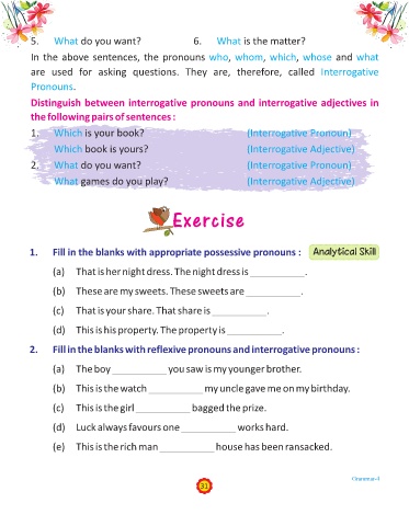 1. Fill in the blanks with appropriate possessive pronouns : Analytical Skill