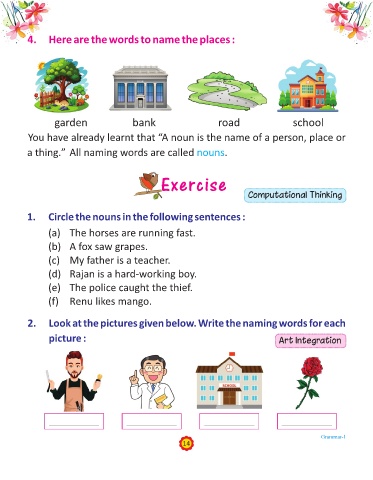 2. Look at the pictures given below. Write the naming words for each