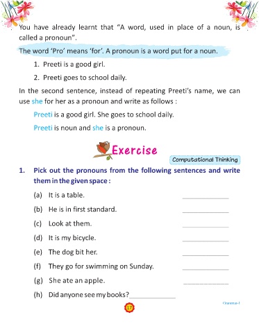 The word ‘Pro’ means ‘for’. A pronoun is a word put for a noun.