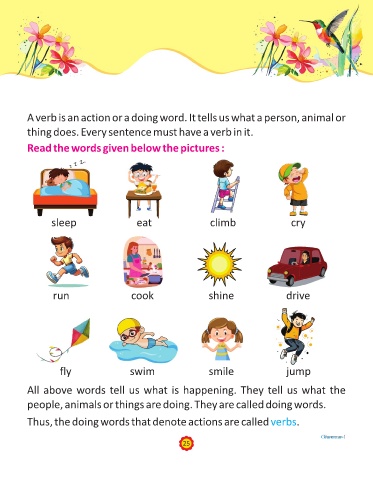 A verb is an action or a doing word. It tells us what a person, animal or