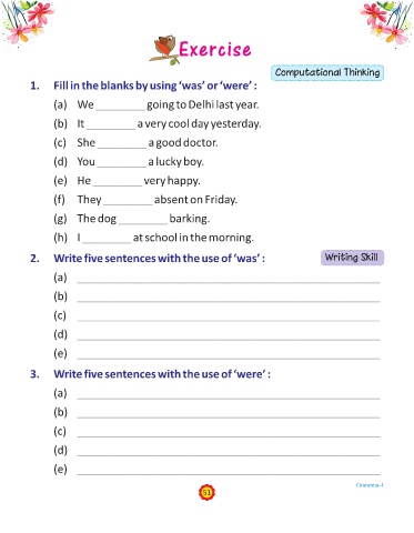 2. Write five sentences with the use of ‘was’ : Writing Skill