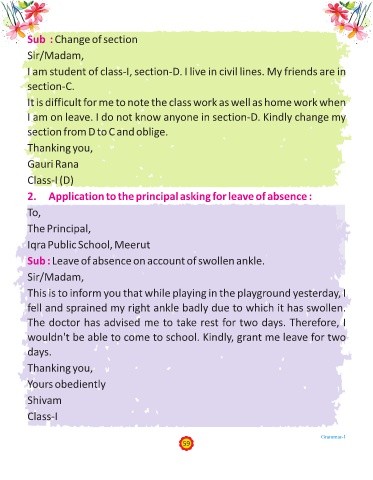 2. Application to the principal asking for leave of absence :