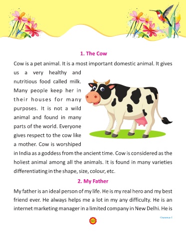 Cow is a pet animal. It is a most important domestic animal. It gives
