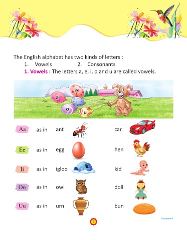 1. Vowels : The letters a, e, i, o and u are called vowels.