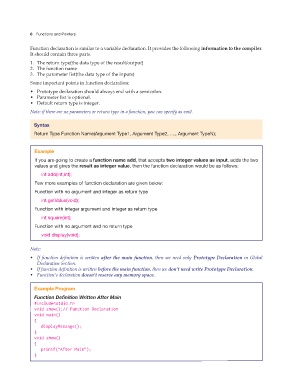 • If function definition is written before the main function, then we don’t need write Prototype Declaration.