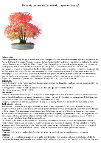 techniques du bonsaï, des couleurs de son feuillage, ainsi que de la structure intéressante de ses branches.