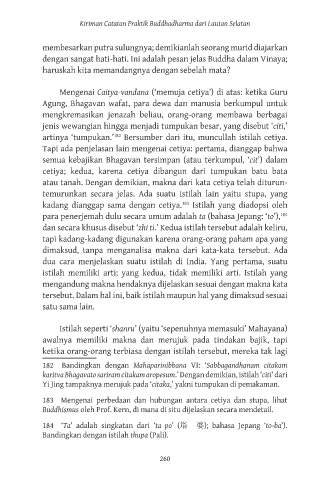 183 Mengenai perbedaan dan hubungan antara cetiya dan stupa, lihat