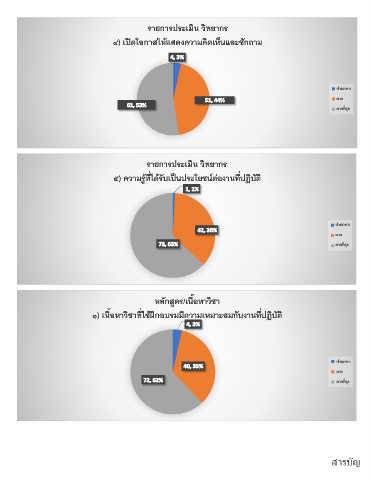 ๑) เนื้อหาวิชาที่ใช้ฝึกอบรมมีความเหมาะสมกับงานที่ปฏิบัติ