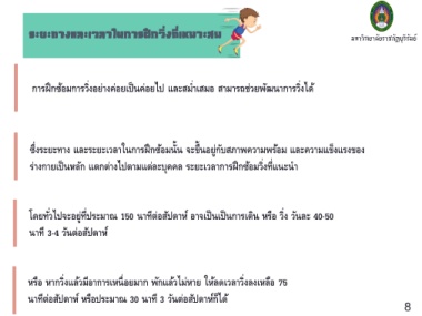 ระยะทางและเวลาในการฝึกวิ่งที่เหมาะสม                                                                          มหาวิทยาลัยราชภัฏบุรีรัมย์