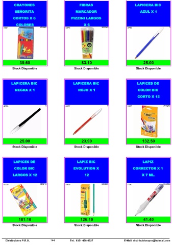 Distribuidora P.R.O. 144 Tel.: 0351-458-8927 E-Mail: distribuidorapro@hotmail.com
