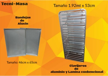 Tecni-Masa Tamaño 1.92mt x 53cm Bandejas de Alucin Tamaño: 46cm x 65cm Clavijeros de D E L O : T M C C - 1 O M aluminio y Lamina conbencional
