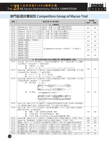 B.第 23 屆日本浜松 PIARA 鋼琴大賽(澳門區選拔賽)組別