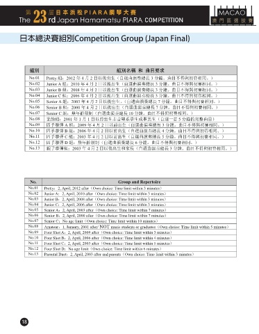 組別 組別名稱 和 曲目要求