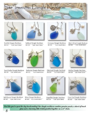 8 glass and a charming little trinket jumbled together on a 24” chain.