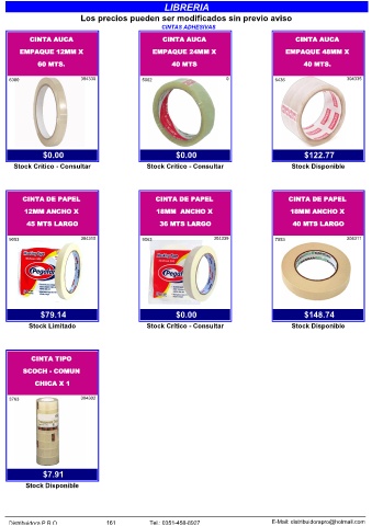 Distribuidora P.R.O. 161 Tel.: 0351-458-8927 E-Mail: distribuidorapro@hotmail.com