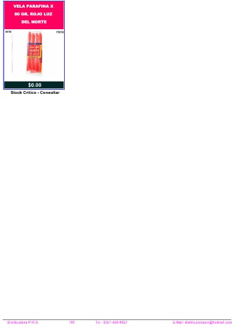 VELA PARAFINA X 80 GR. ROJO LUZ DEL NORTE 8418 75518 NO 0 $0.00 Stock Crítico - Consultar Distribuidora P.R.O. 166 Tel.: 0351-458-8927 E-Mail: distribuidorapro@hotmail.com