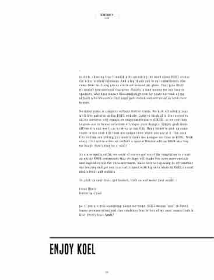 in style, showing true friendship by spreading the word about KOEL across the ether to their followers. And a big thank you to our contributors who come from far-flung places scattered around the globe. They give KOEL