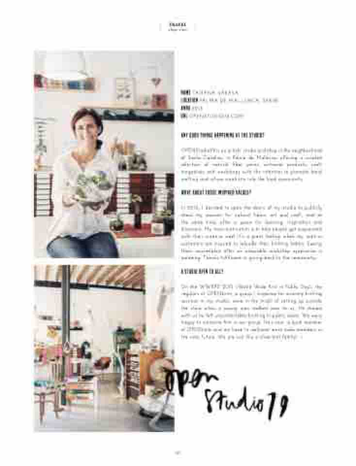 OPENStudio79 is an artists’ studio and shop in the neighborhood of Santa Catalina, in Palma de Mallorca, offering a curated selection of natural fiber yarns, artisanal products, craft magazines and workshops with the intention to promote hand crafting and infuse creativity into the local community.