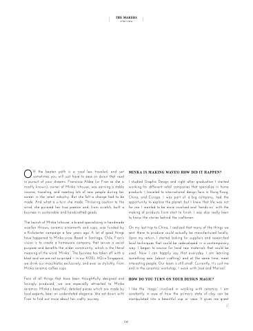 The launch of Minka Inhouse, a brand specializing in handmade woollen throws, ceramic ornaments and cups, was funded by a Kickstarter campaign a few years ago. A lot of good things have happened to Minka since. Based in Santiago, Chile, Fran's vision is to create a homeware company that serves a social purpose and benefits the wider community, which is the literal meaning of the word “Minka”. The business has taken off with a blast and we are not surprised — in our KOEL HQ in Singapore, we drink our macchiatos exclusively, and ever so stylishly, from Minka ceramic coffee cups.