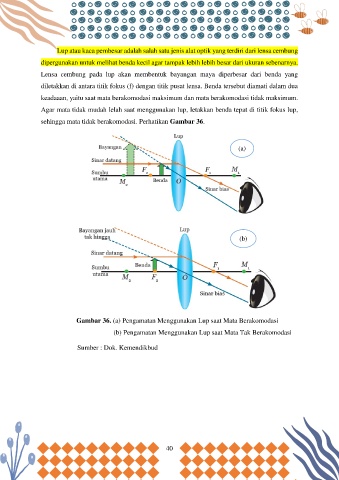 Gambar 36. (a) Pengamatan Menggunakan Lup saat Mata Berakomodasi