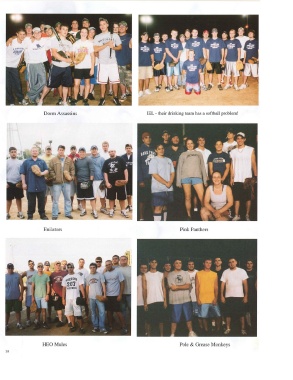 Dorm Assassins IEL - their drinking team has a softball problem! Enilators Pink Panthers REO Mules Pole & Grease Monkeys 10