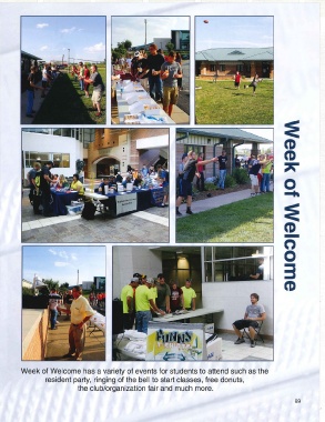 :e - (D n 0 3 (D Week of Welcome has a variety of events for students to attend such as the resident party, ringing of the bell to start classes, free donuts, the club/organization fair and much more. 69