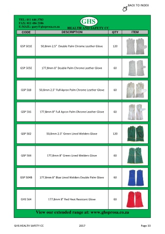 GSP 501E 50,8mm 2.5" Double Palm Chrome Leather Glove 120