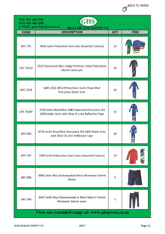 GPC 701 4014 Javlin Polycotton Coti-suits (Assorted Colours) 10