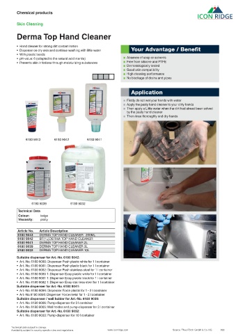 • Dispense on dry skin and continue washing with little water Your Advantage / Benefit