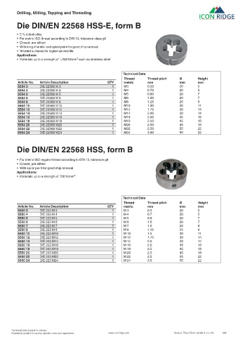5554 8 DIE 22568 M 8 1 M8 1.25 25 9