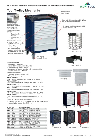 • Tool trolley mechanic blue /light grey (RAL5003 / RAL7035) 4990 179 31 4