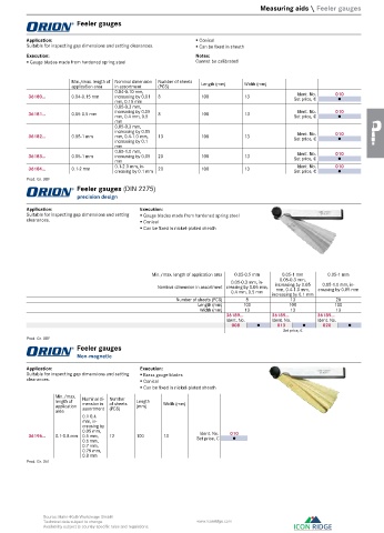 Gauge blades made from hardened spring steel Cannot be calibrated