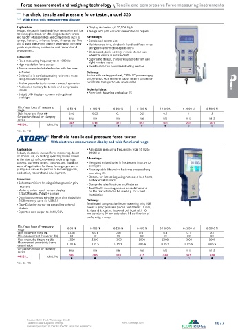 unit is used primarily in quality assurance, incoming Maintenance-free, electronic handheld force meas-