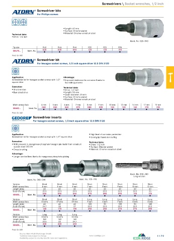Screwdrivers \ Socket wrenches, 1/2 inch
