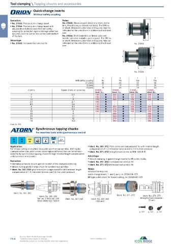 No. 21566: Precise quick-change insert with ters, thread sizes, or brands not listed. The DIN no.
