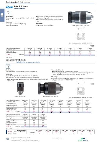 For clamping and releasing drill bits quickly without a key. With internal cone in accordance with DIN 238
