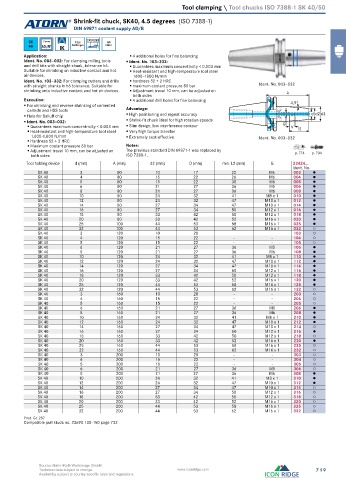 Shrink-fit chuck, SK40, 4.5 degrees (ISO 7388-1)
