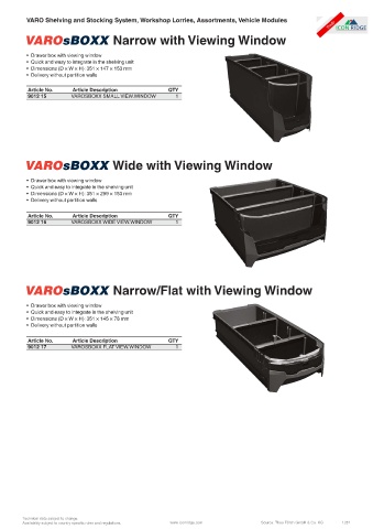 VARO Shelving and Stocking System, Workshop Lorries, Assortments, Vehicle Modules