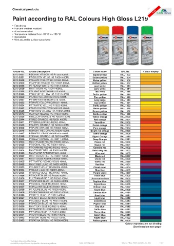 Paint according to RAL Colours High Gloss L219