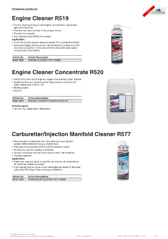 • Carburetor engines: spray on air filter, air nozzles, air conductions,