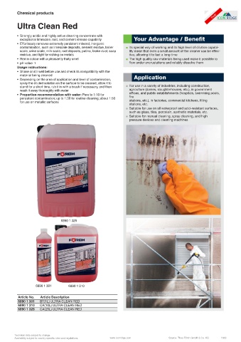 contamination, such as limescale deposits, cement residue, boiler Its special way of working and its high level of dilution capabi-