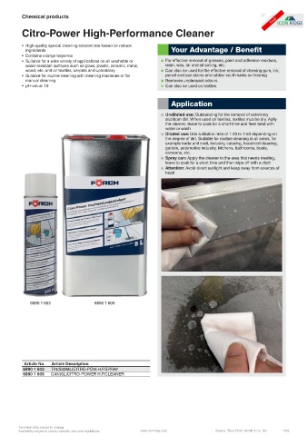 • Suitable for a wide variety of applications on all washable or For effective removal of greases, paint and adhesive residues,