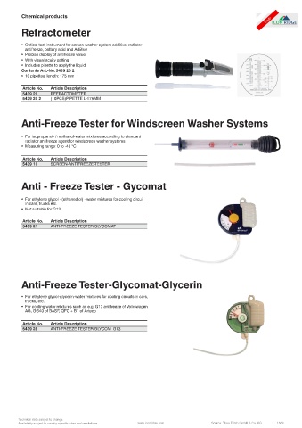 • For cooling water mixtures such as e.g. G13 antifreeze of Volkswagen