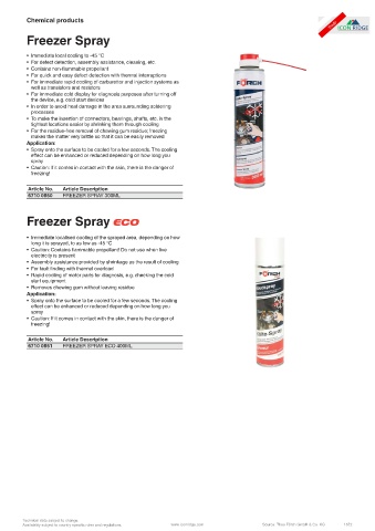 • Spray onto the surface to be cooled for a few seconds. The cooling