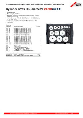 • 1 each cylinder saw Ø 19, 22, 30, 35, 40, 44, 51, 60, 68, 76, 83, 92,