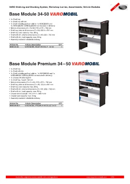 VARO Shelving and Stocking System, Workshop Lorries, Assortments, Vehicle Modules