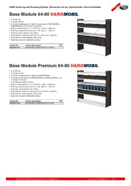 VARO Shelving and Stocking System, Workshop Lorries, Assortments, Vehicle Modules