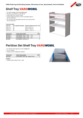 VARO Shelving and Stocking System, Workshop Lorries, Assortments, Vehicle Modules