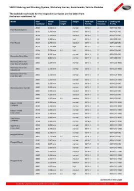 Model from Wheel Excess Height Roof rack Amount of Loading roll