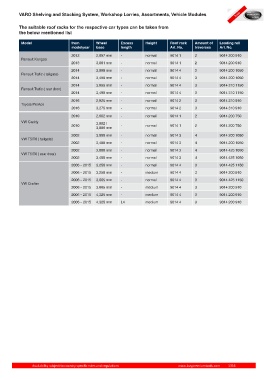 Model from Wheel Excess Height Roof rack Amount of Loading roll